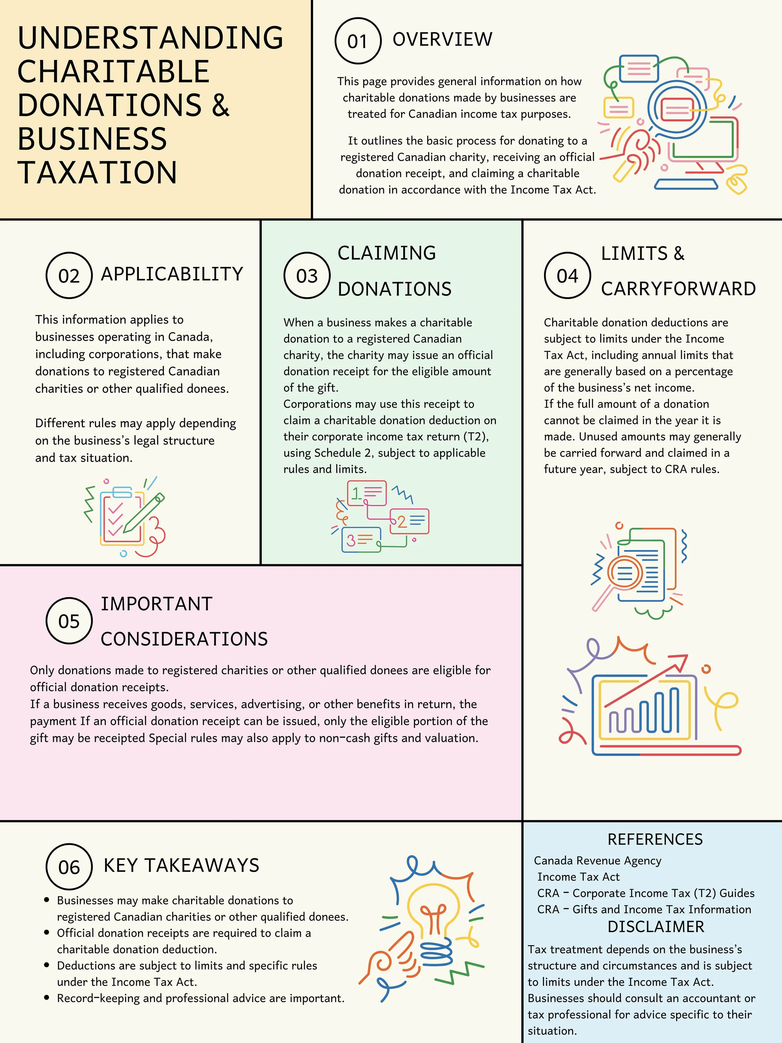 When a business donates money or goods to a registered Canadian charity, the donation may generally be deducted when calculating taxable income.